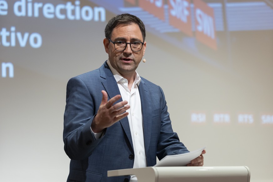 Susanne Wille stellte zwei weitere neue Mitglieder der SRG-Geschäftsleitung vor: Nicolas Pernet, derzeit Chef des rätoromanischen Radios und Fernsehens, wird Direktor Angebot. Er ist damit verantwortlich für den Sport und fiktionale Serien. Die Zuständigkeit für die beiden Bereiche wird den Sendern in den Sprachregionen entzogen und der Generaldirektion der SRG zugeführt.