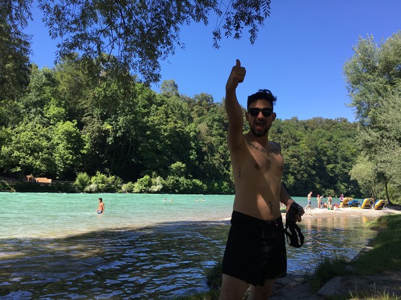 Wir folgen der Empfehlung von watson-User Fabian Küng und wagen uns in die Aare. Schono schön! (Limmat und Letten, wenn ihr das seht: ES IST NICHT SO, WIE ES AUSSIEHT!)
