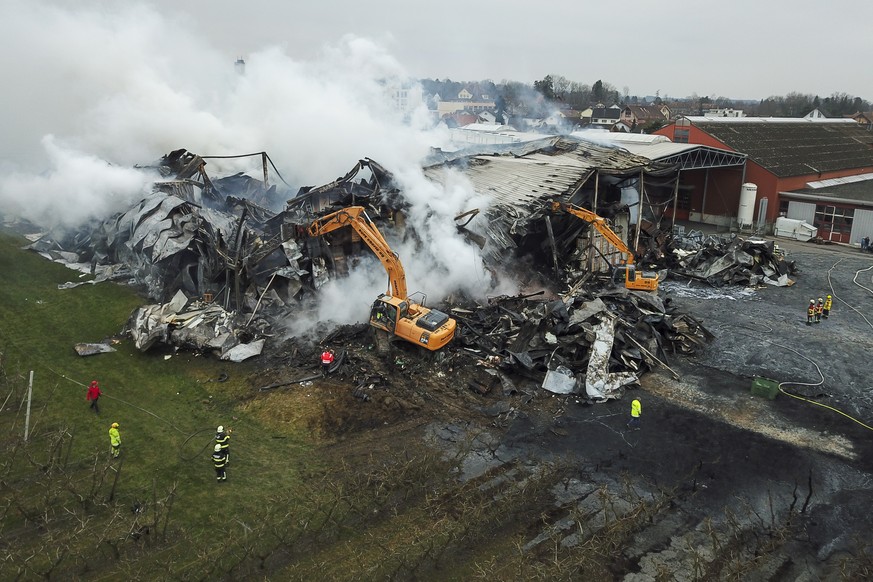 Die Polizei erhielt verschiedene Hinweise auf Brandstiftung. Bereits zwei Stunden vor dem Grossbrand hatten Unbekannte in der Nähe eine Schubkarre angezündet. Polizisten löschten die Schubkarre. (whr/sda)