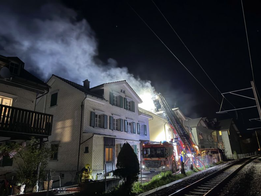 In Herisau ist am Sonntagabend in einem Mehrfamilienhaus ein Brand ausgebrochen. Die Bahnstrecke Herisau-Waldstatt der Appenzeller Bahnen blieb während der Löscharbeiten rund drei Stunden gesperrt, wie die Kantonspolizei Appenzell Ausserrhoden am Montag mitteilte.