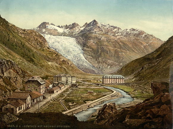 Um die Wende vom 19. zum 20. Jahrhundert gelang es erstmals, kolorierte Fotografien in grossen Stückzahlen zu drucken. Die Schweizer Tourismusindustrie hat sich dies zunutze gemacht.