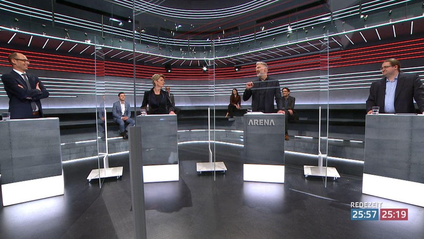 Um diese Befürchtungen auszudiskutieren, folgten am Freitagabend folgende Gäste dem Rufe Sandro Brotz' in die SRF-«Arena»: