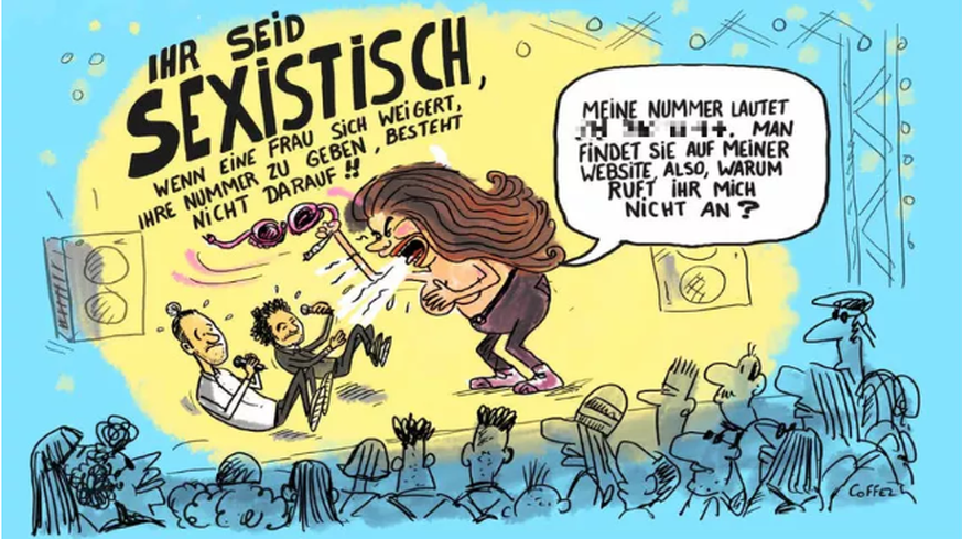 Dass die Kritisierte halbnackt und Büstenhalter schwingend karikiert wurde, beurteilt der Presserat hingegen nicht als diskriminierend. Denn die Kritisierte habe eine solche Pose selber im Sinn eines Protestes bewusst öffentlich eingenommen.