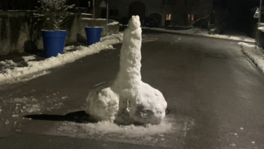 Als er für das Foto neben der Schneeskulptur posierte («wenn ich das den Kollegen erzähle ...»), stellte der Mann aus Daillens fest, dass die Kälte der Männlichkeit des 1,20 m grossen Glieds – das im Übrigen ziemlich gut gemacht ist – nichts anhaben konnte. Wenn man genau hinschaut, erkennt man, dass die Hoden eine harmonische Form haben und die Eichel sich subtil vom Penis abhebt. Zweifellos hat die Eröffnung des Kunstviertels in Lausanne die Kreativität der Waadtländer Jugend beflügelt.