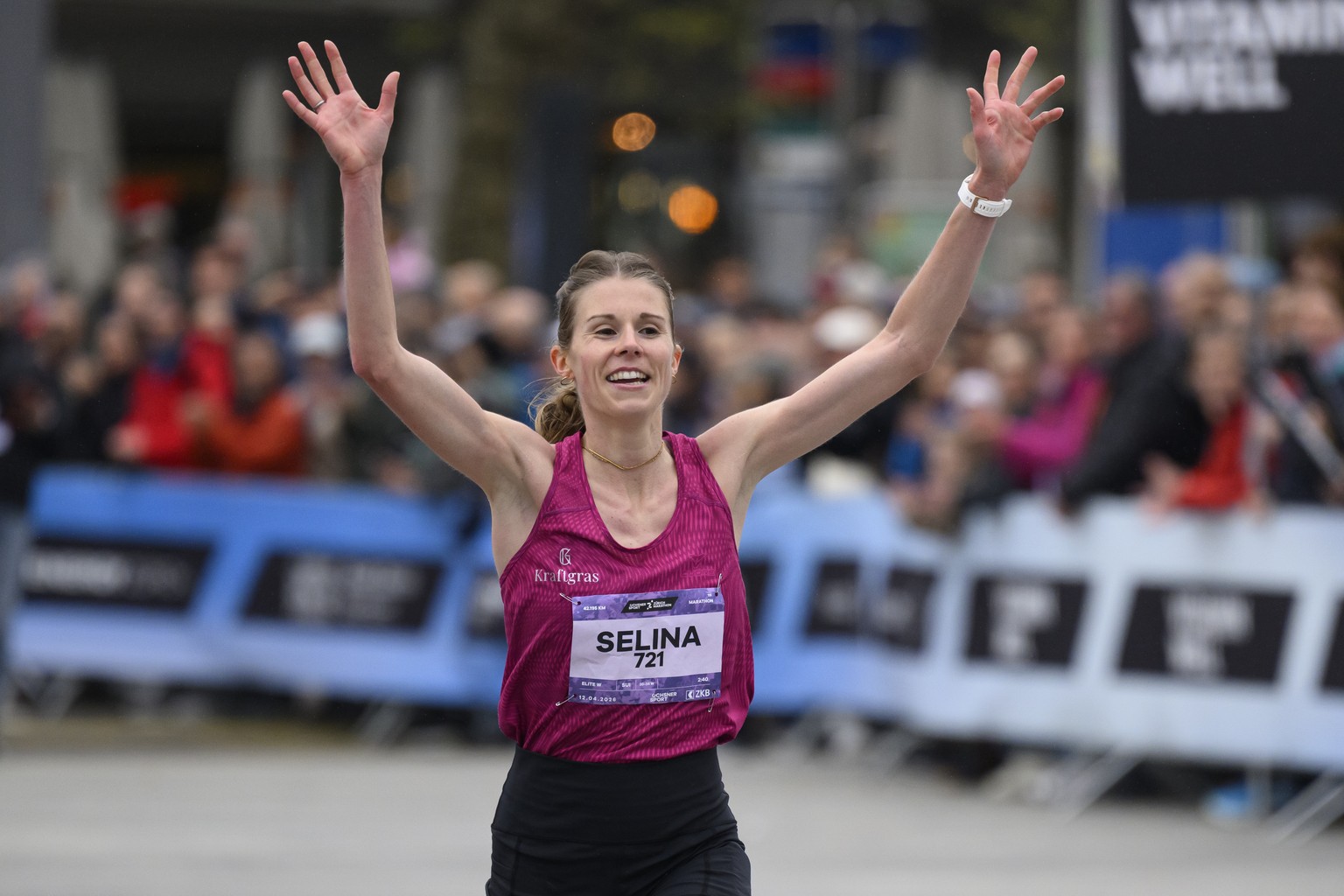 Selina Ummel wird dritte am 23. Zuerich Marathon, fotografiert am Sonntag, 12. April 2026 in Zuerich. (KEYSTONE/Christian Beutler)