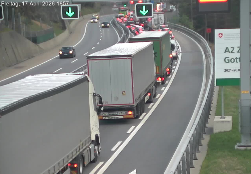 Auf der A2 vor dem Gotthard-Nordportal hat sich der Verkehr am Freitagabend zwischen Erstfeld und Göschenen UR auf einer Länge von zehn Kilometern gestaut. Reisende mussten mit einer Wartezeit von bis zu eineinhalb Stunden rechnen, wie der TCS mitteilte.