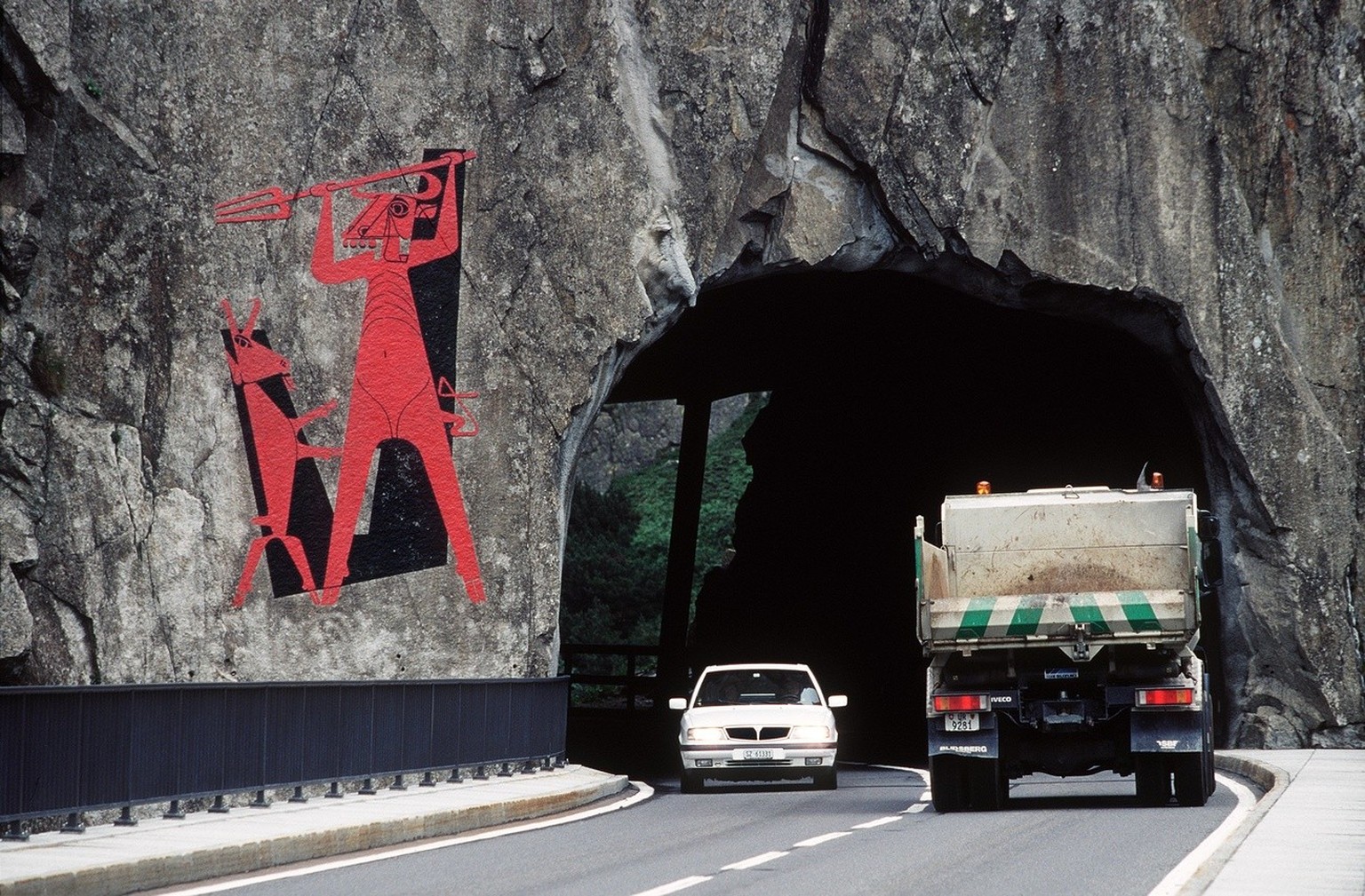 Der Teufelsstein steht noch heute neben der Autobahn in Göschenen. Er musste für ihren Bau verschoben werden. Denn der Mensch hat die Verkehrswege am mythischen Pass stetig ausgebaut und ihn mit mehreren Tunnelröhren durchbohrt. Nun wurden die beiden wichtigsten für den Strassen- und Schienenverkehr gleichzeitig stark beschädigt.