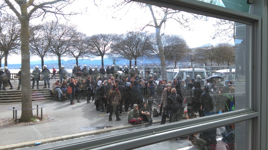 Am frühen Nachmittag war die Stimmung noch deutlich angespannter. Die Situation drohte anfangs zu eskalieren, als die Polizei einige Dutzend Demonstranten auf der Quaibrücke einkesselte. Mit Gitterfahrzeugen und Wasserwerfern wurden sie daran gehindert, auf den Bürkliplatz und zum Kongresshaus zu gelangen.