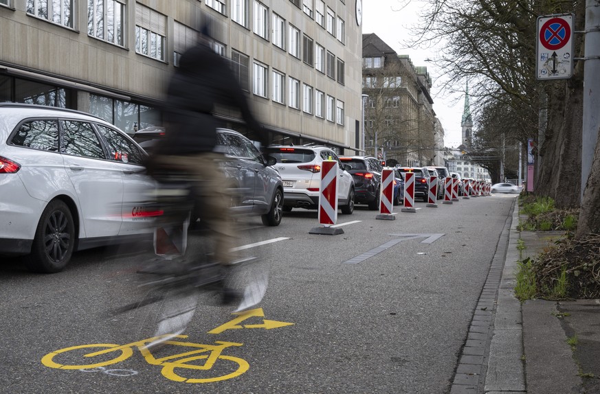 Auslöser für den Zank ist die Baustelle am Hauptbahnhof, die nach Ansicht der Stadt für Velofahrende ein Sicherheitsrisiko darstellt. Deshalb markierte sie im Bereich Neumühlequai/Walchestrasse eine «dringliche und befristete Verkehrsanpassung», wie die Stadt es ausdrückt, sprich einen Velostreifen.