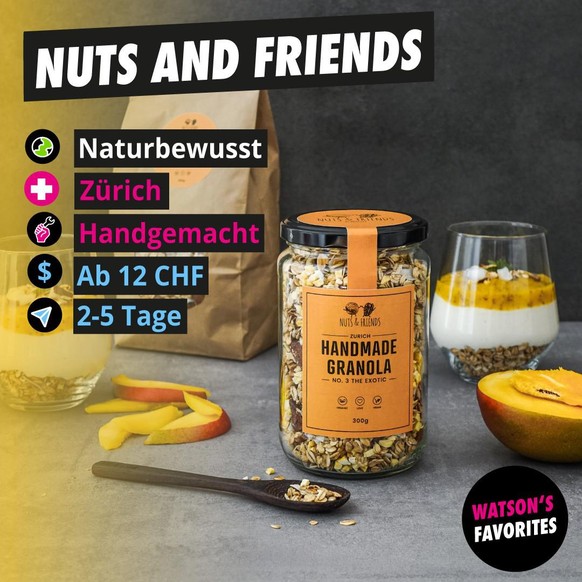 Über die Granolas: Das vegane Bio-Granola von Nuts and Friends überzeugt dank seinem hohen Nussanteil, einer überdurchschnittlichen Portion an ungesättigten Fettsäuren und unterliegt keinerlei Verwendung von raffiniertem Zucker.