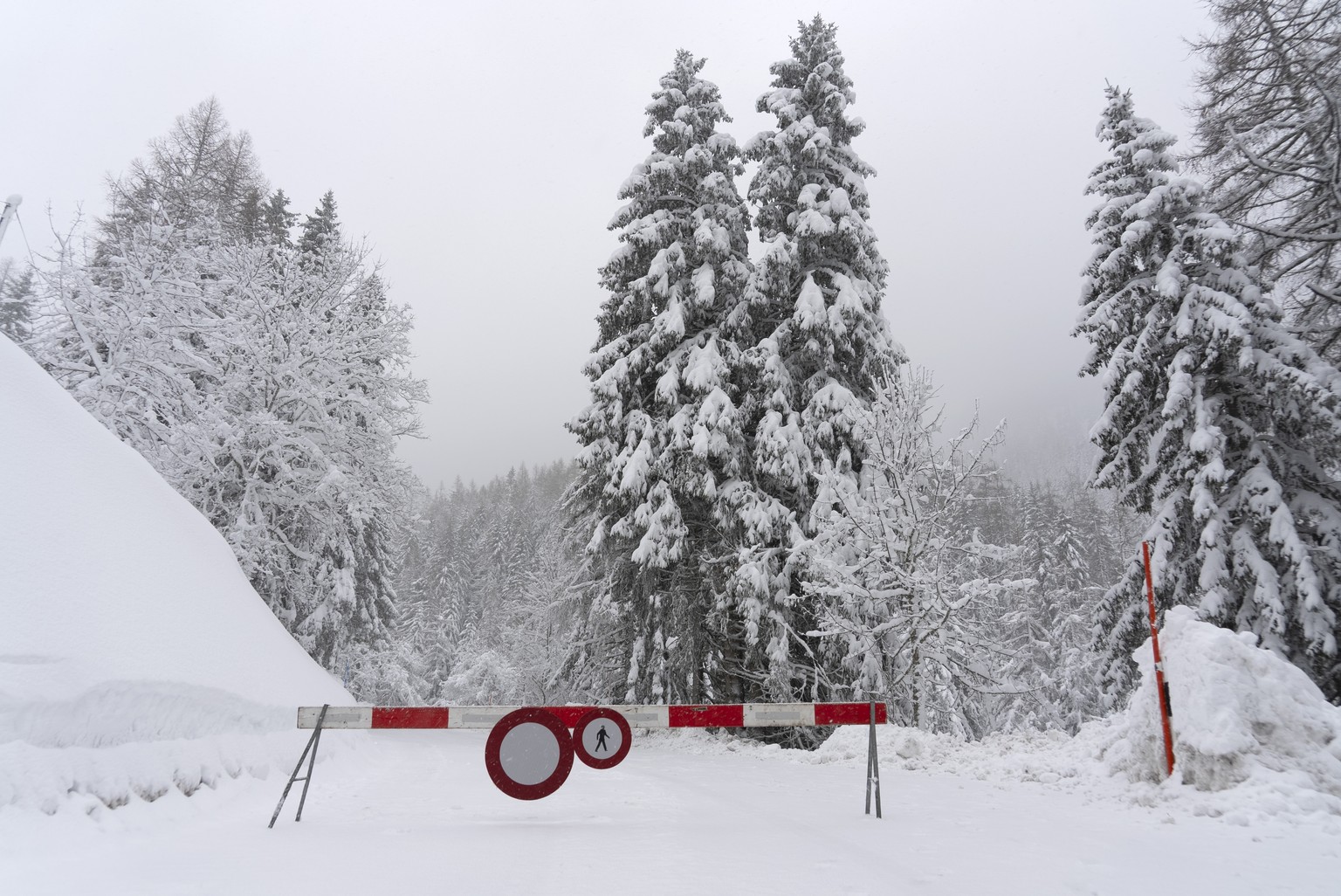 Eine wegen starken Schneefällen gesperrte Strasse in Campex Lac im Kanton Wallis.Bild: keystone