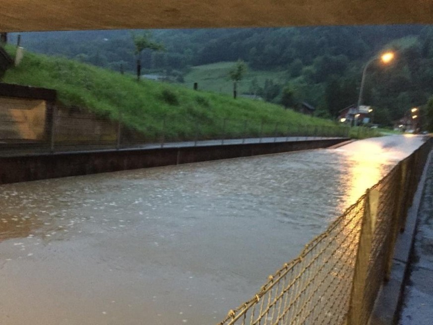 Es standen rund 60 Feuerwehrleute in der Nacht auf Samstag im Einsatz. Die Feuerwehr hatte die Lage unter Kontrolle gebracht, war gegen Mitternacht aber noch mit dem Abpumpen von Wasser beschäftigt – unter anderem aus einer Bahnunterführung bei Schachen.