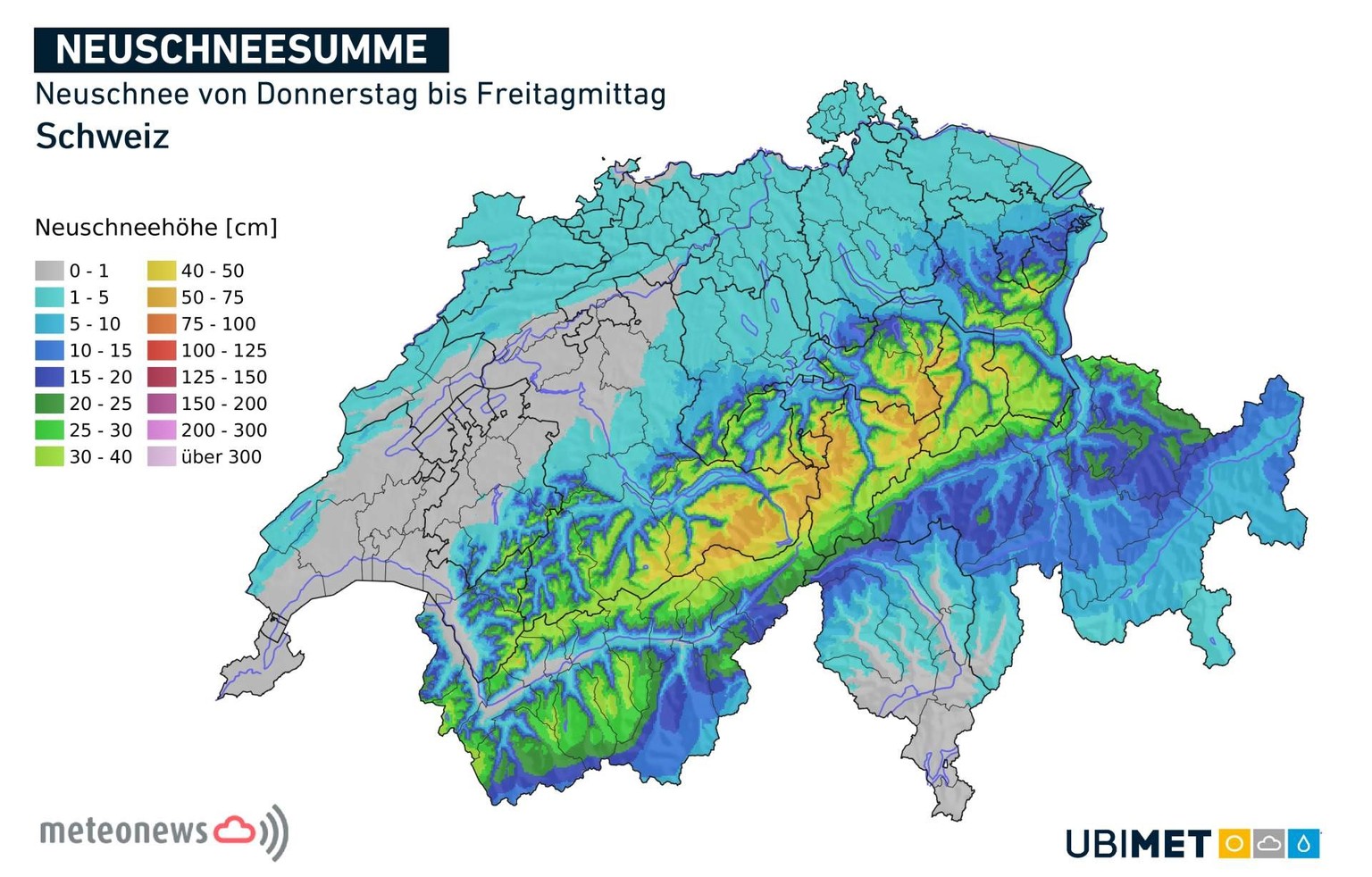 Am Freitag muss dann mit deutlich kühleren Temperaturen gerechnet werden, es bleibt vielerorts bewölkt, «entlang der Alpen und im Osten fällt noch etwas Schnee», schreibt MeteoNews.