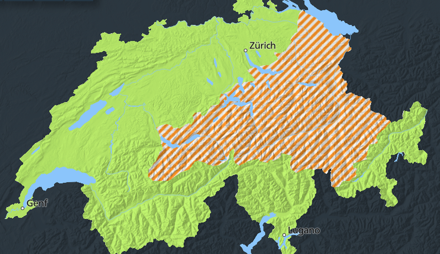 Die möglichen Unwetter können in mehreren Kantonen auftreten.Bild: Meteoschweiz