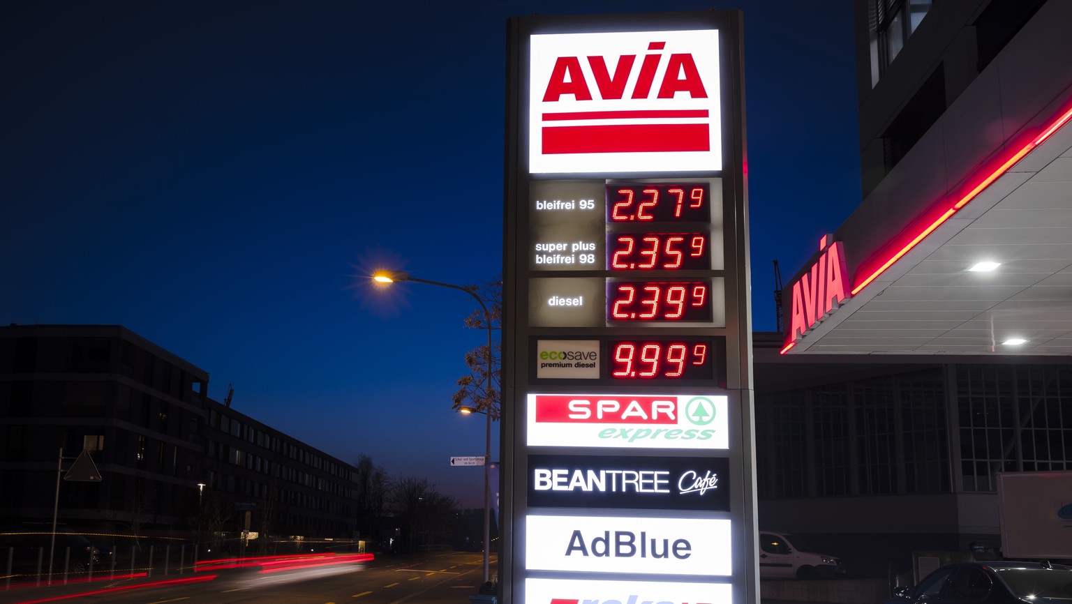 Die Preise sind regional unterschiedlich – im Durchschnitt kostet ein Liter Benzin derzeit rund 2.23 Franken, für Diesel werden 2.35 Franken verrechnet.