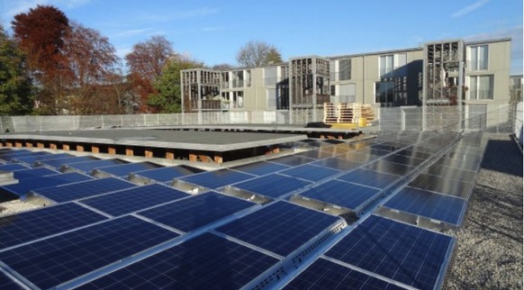 Ein vollbepacktes Dach über dem Parkhaus am Burriweg hätte die Kapazität, 71 Teslas für den Pendelbetrieb zu speisen.
