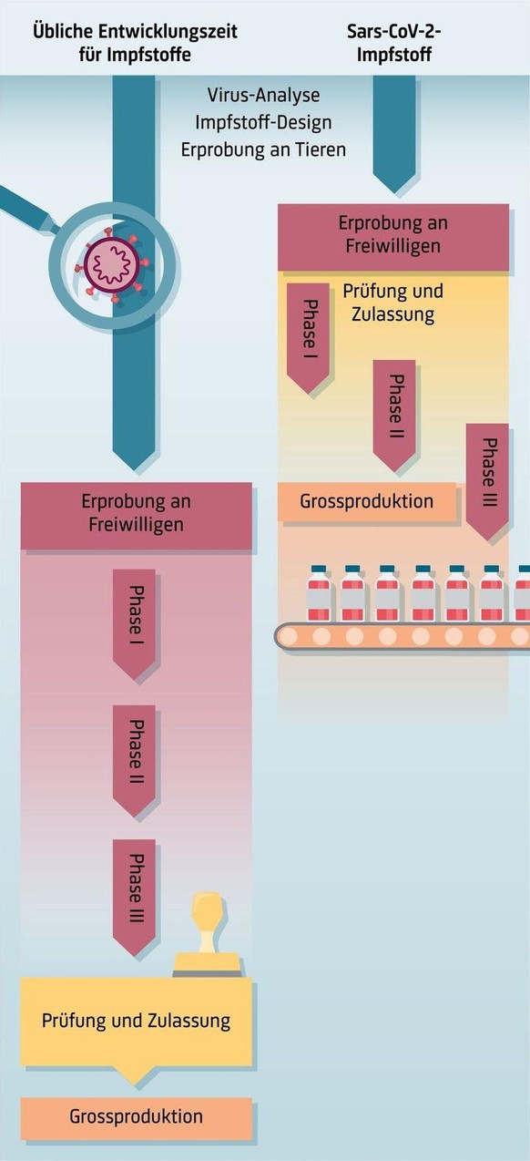 Zudem haben gleichzeitig sehr viele Institutionen und Personen an Impfstoffen geforscht, weil die Pandemie eine globale Herausforderung ist. Die Forschungsprojekte wurden durch die Staaten finanziell abgesichert. Normalerweise geht die Entwicklung eines Impfstoffs mit einem grossen Investitionsrisiko einher. Nicht aber in diesem Fall.
