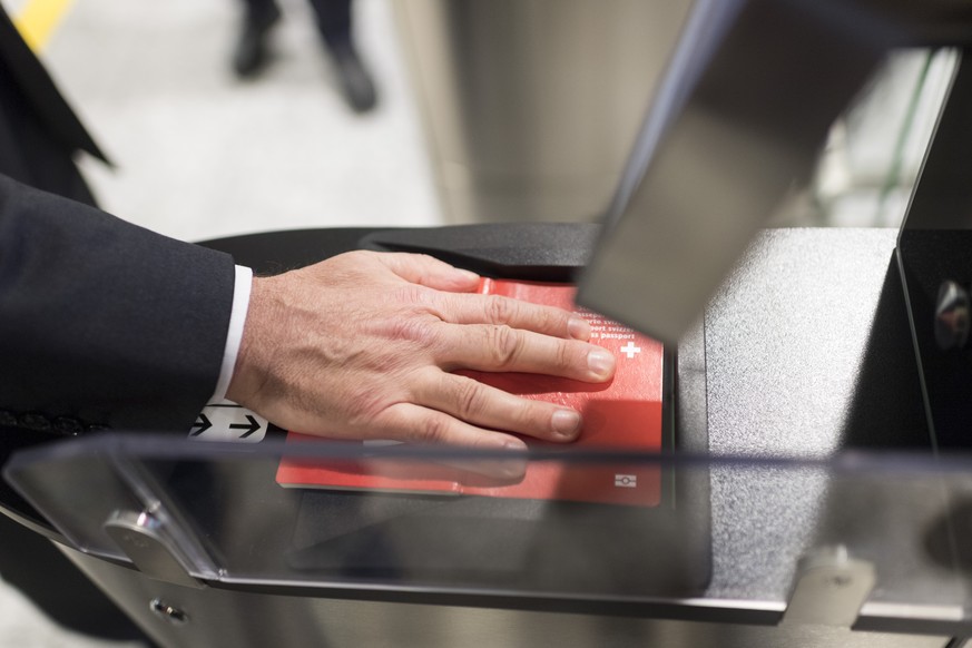 Der Zürcher Sicherheitsdirektor Mario Fehr (SP) stellte sich am Mittwoch persönlich als Versuchskaninchen zur Verfügung: Biometrischen Pass auf die Glasplatte legen, warten bis der Chip gelesen ist, durch die Schleuse vor die Kamera treten und für das Foto das Gesicht in Richtung Display halten.