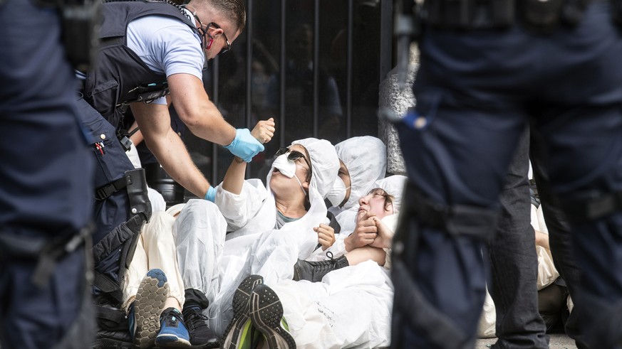 In Basel ist das Strafmass laut Angaben der Klimaschützer höher: Weil ihnen die Staatsanwaltschaft zusätzlich Landfriedensbruch und Sachbeschädigung vorwirft, kassieren die Aktivisten laut Medienmitteilung Freiheitsstrafen von 150 bis 170 Tagen und bis zu 180 Tagessätze à 50 Franken.