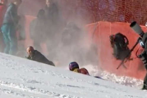 Unsportlicher geht nicht! Hier wird Henrik Kristoffersen mit Schneebällen beworfen