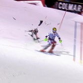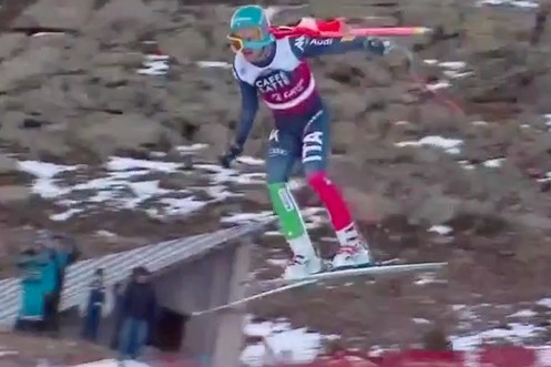 18.12.2004: Abfahrer Kristian Ghedina kollidiert auf den letzten Metern beinahe mit einem Reh