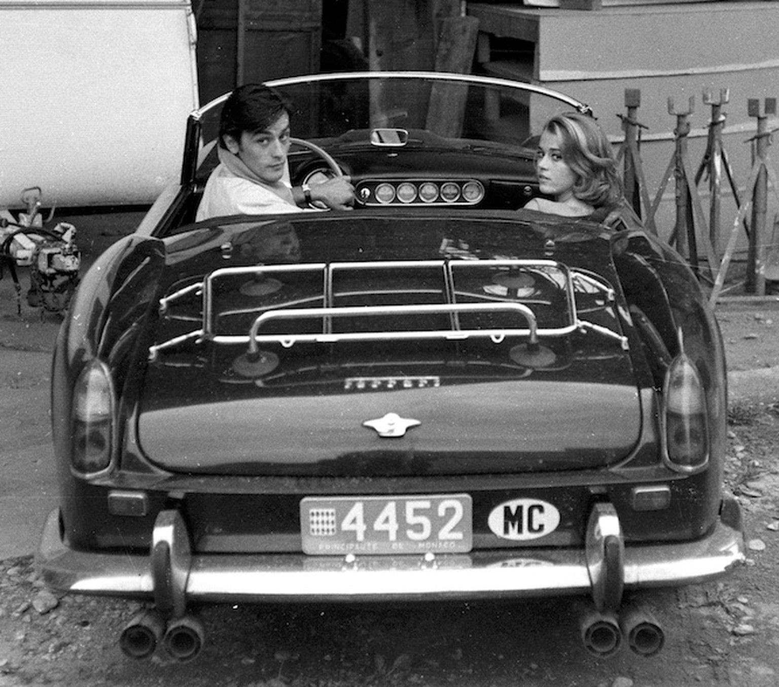 Alain Delon, Jane Fonda, Ferrari 250 GT California – 1961 in Antibes. Hach.(Foto Edward Quinn, © edwardquinn.com)