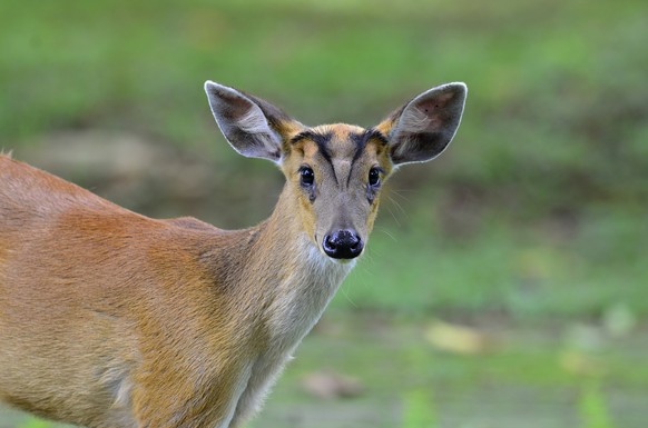 Muntjaks sind kleine, stämmige Hirsche, die im asiatischen Raum vorkommen.