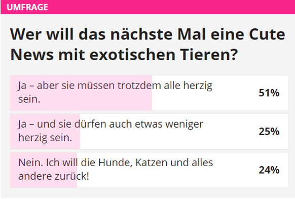 Inkaseeschwalbe und Co. hatte ich euch letzte Woche geliefert, inklusive der Frage, ob ihr eine ganze Cute News mit exotischen Tieren wollt.