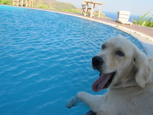 Du, wenn die Wasser-temperatur im Pool perfekt ist.