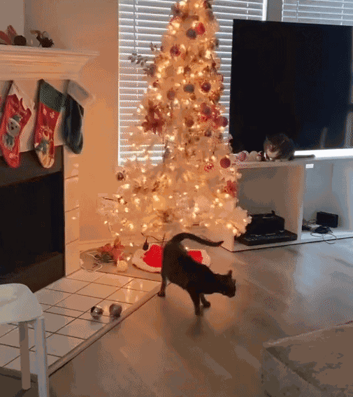 Werden die geschmückten Bäume von den Katzen niedergeschmettert oder schaffen sie es, einen Aufstand gegen die hinterhältigen Vierbeiner zu lancieren? (Sorry für diesen reisserischen Text, ich bin emotional zu involviert in dieses Duell. Gut, dass es bald vorbei ist …)