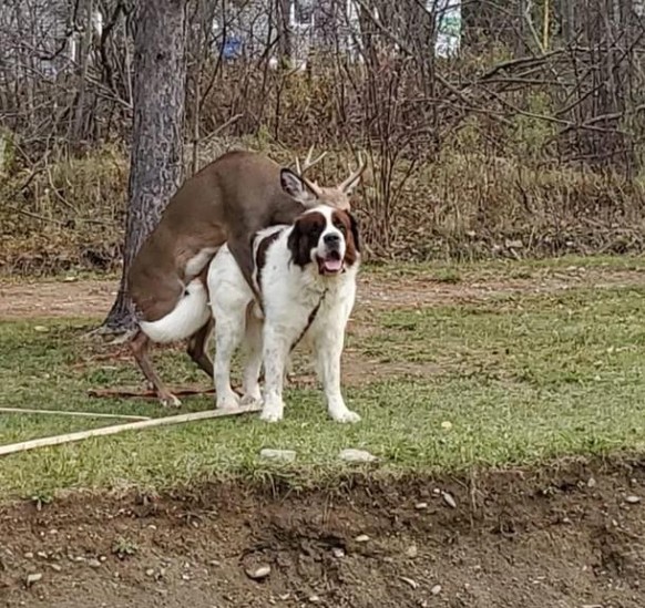 Ein Hirsch besteigt einen Hund? Das gibt's nur in den Cute News!