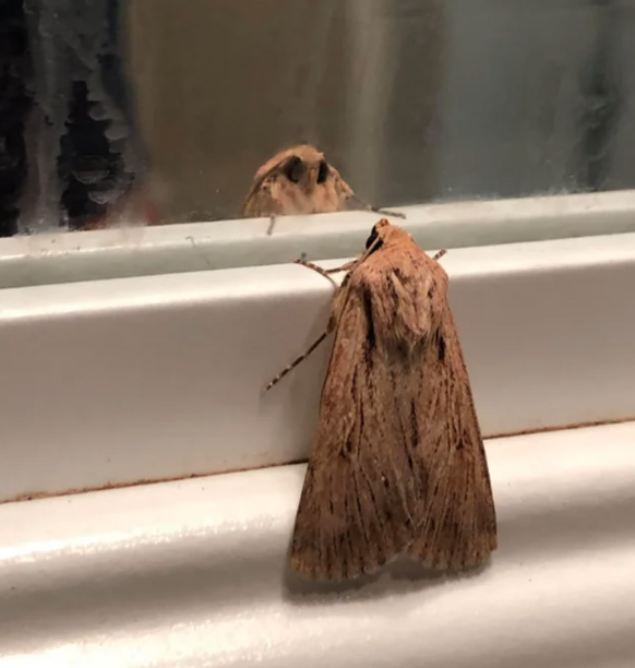 Wenn sich ein Nachtfalter selbst reflektiert.