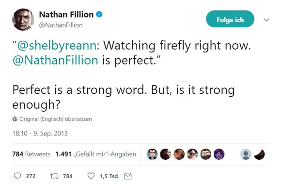 Aber Nathan Fillion kann da zweifellos mithalten. Hier ein paar seiner Twitter- und Instagram-Perlen: