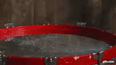 Geschmolzenes Gallium auf einer Bass Drum (der Schlag kommt von unten).bild: youtube