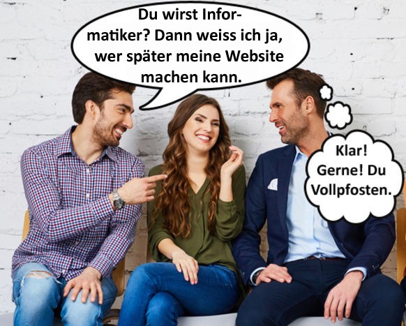 «Ich hab jetzt ein Start-up. Kannst du meine Firmen-Website programmieren? Sagen wir für ein Bier oder so.»