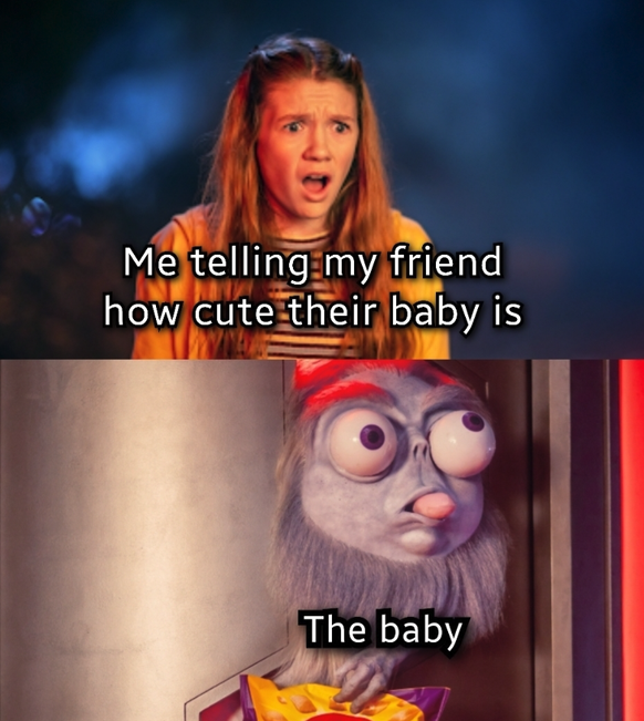 Ich, wie ich meiner Freundin sage, wie süss ihr Baby ist.
