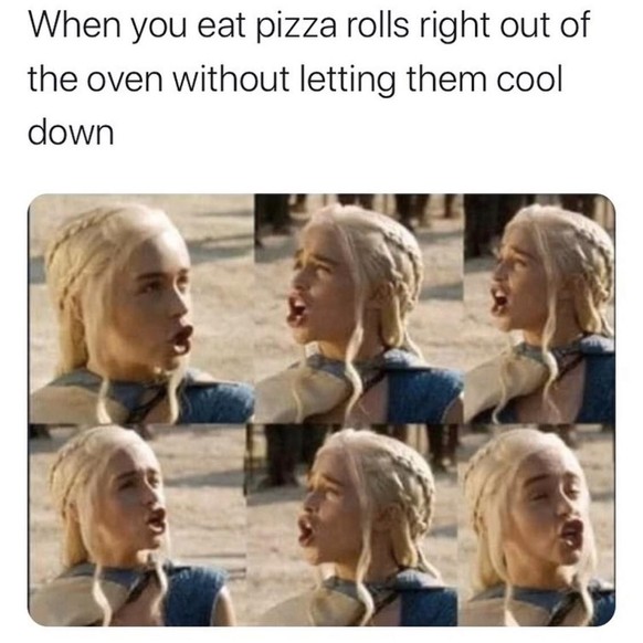 «Wenn du die Pizzabrötchen direkt aus dem Ofen isst, ohne sie abkühlen zu lassen.»