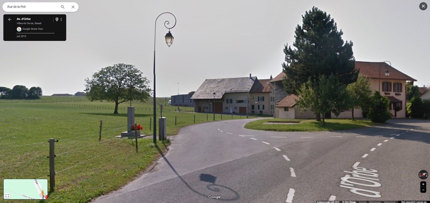 Die Einfahrt in die Rue de la Pidi in Villars-le-Terroir