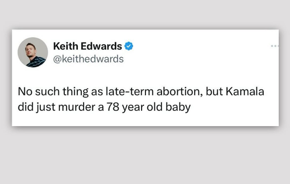 Keine Spätabtreibung, aber Kamala hat gerade ein 78 Jahre altes Baby zerstört.