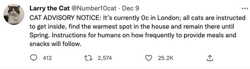 Larry the No. 10 Downing Street Cat meldete sich mit einer Neuinterpretation von «Let It Snow»: