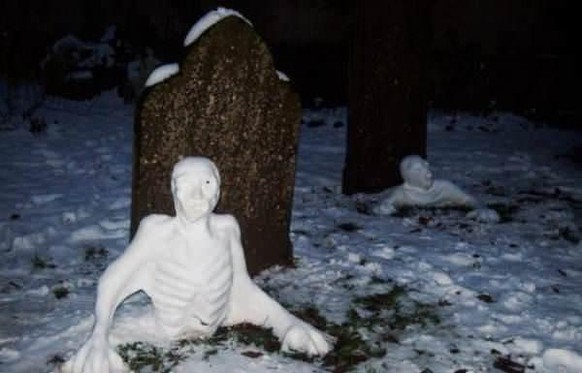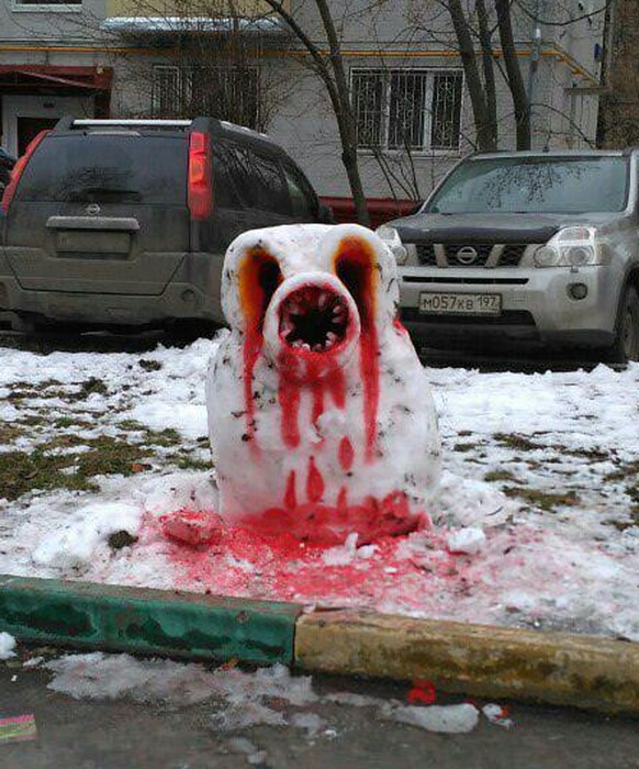 Falls ein Kind diese Schneefigur gemacht hat, braucht es vermutlich einen Therapeuten ... 😅
