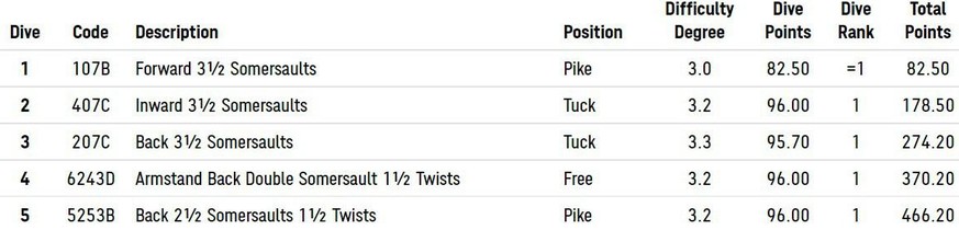 10, 10, 10, 10, 10, 10, 10 – von allen sieben Kampfrichtern eine Zehn zu erhalten, ist der Traum aller Wasserspringer. Nur selten gelingt dieses Kunststück, bei den Frauen hatte dies in der 117-jährigen Disziplinen-Geschichte bei Olympia noch keine Athletin geschafft. Bis heute ...