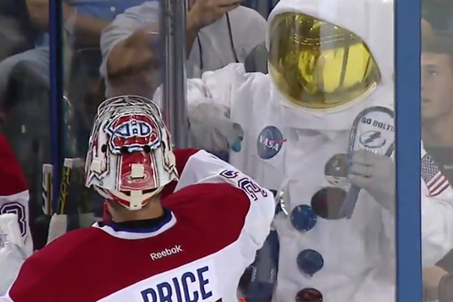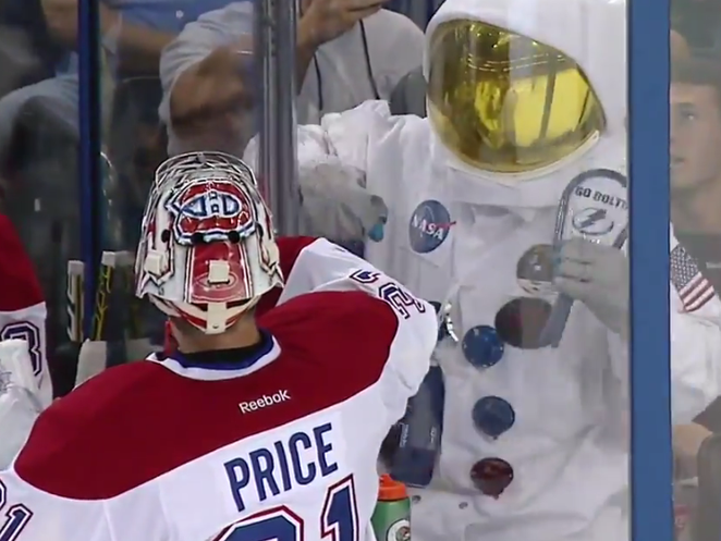 Als Astronaut den gegnerischen Torhüter ablenken und in letzter Sekunde den Siegtreffer sehen: Priceless!