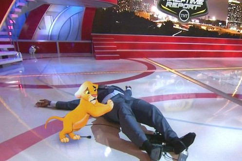 Nichts geht mehr bei «Super Leo» – hier torkelt das Löwen-Maskottchen total betrunken durchs Stadion