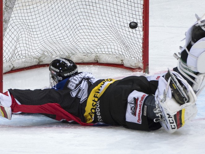 Dieser Eishockey-Goalie hat das Siegerbier schon vor dem Spiel getrunken. Vielleicht waren's auch zwei oder drei…