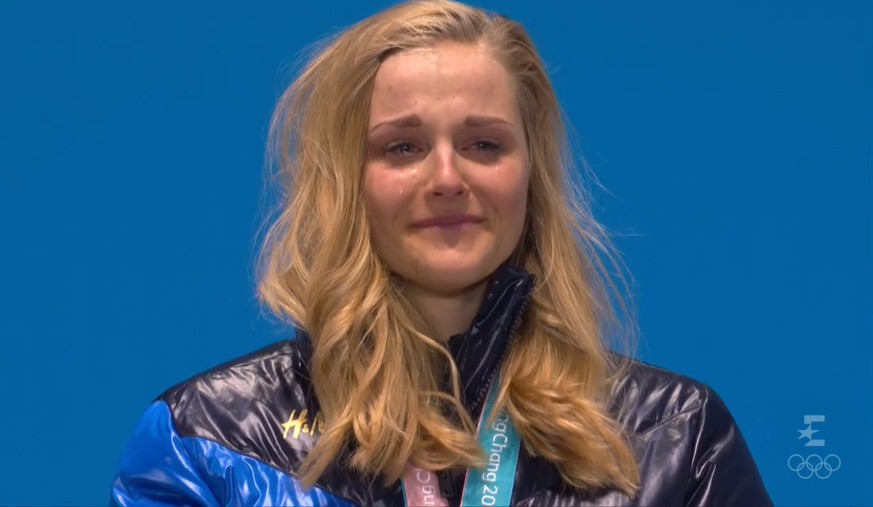 Die 24-jährige Stina Nilsson holte gestern Gold im klassischen Langlauf-Sprint. Bei der heutigen Medaillenübergabe konnte die Schwedin ihre Emotionen nicht mehr kontrollieren. Nilsson hatte vor den Winterspielen in Südkorea bereits vier WM-Silbermedaillen in ihrem Besitz gehabt, nun stand sie erstmals an einem Grossanlass zuoberst auf dem Podest.