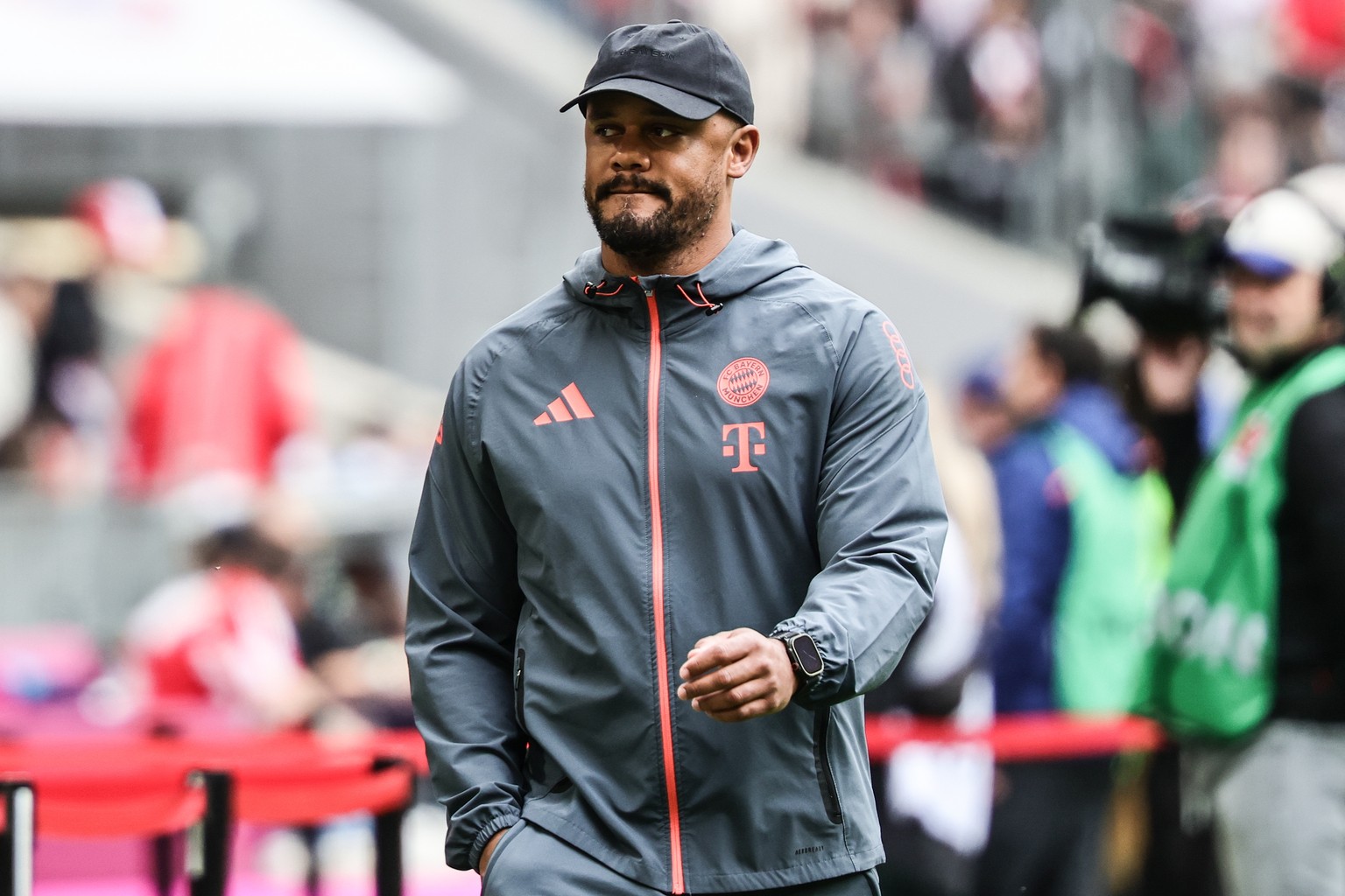 epa12900367 Head coach Vincent Kompany of Munich arrives before the German Bundesliga soccer match between FC Bayern Munich and VfB Stuttgart, in Munich, Germany, 19 April 2026. EPA/RONALD WITTEK COND ...