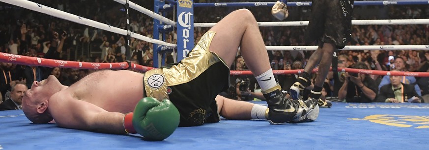 Für einmal findet Wilders krachende Rechte ins Ziel. Fury knickt ein. 2,06 Meter Biomasse auf dem Weg nach unten. Wilder doppelt mit einem fürchterlichen linken Haken nach, trifft den Schädel des bereits Angeknockten sauber und mit voller Wucht.