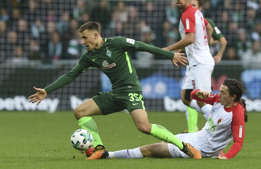 Bremen bleibt damit mit fünf Punkten Tabellenvorletzter. Michael Gregoritsch (40./61.) und per Foulpenalty Alfred Finnbogason (45.) erzielten die Tore für Augsburg. Das Team des Schweizer Torhüters Marwin Hitz rückte auf Platz 9 vor.