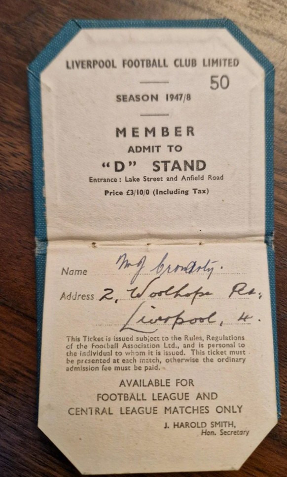 So sahen die Saisonkarten vom FC Liverpool in der Saison 1947/48 aus: